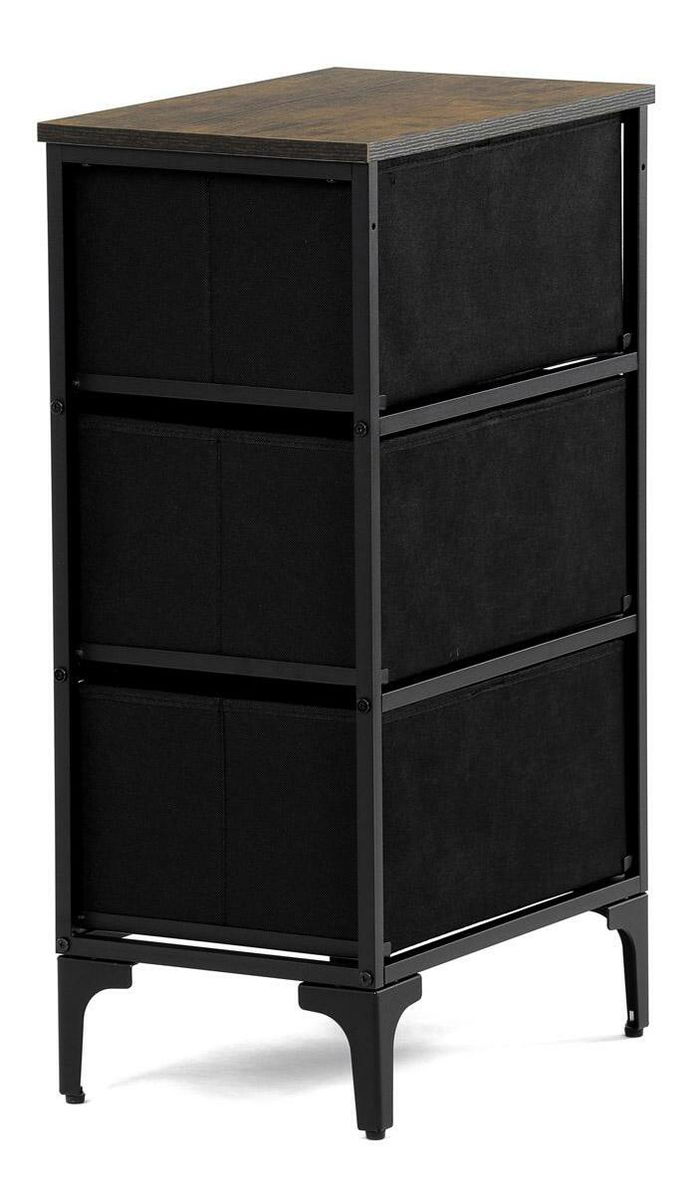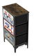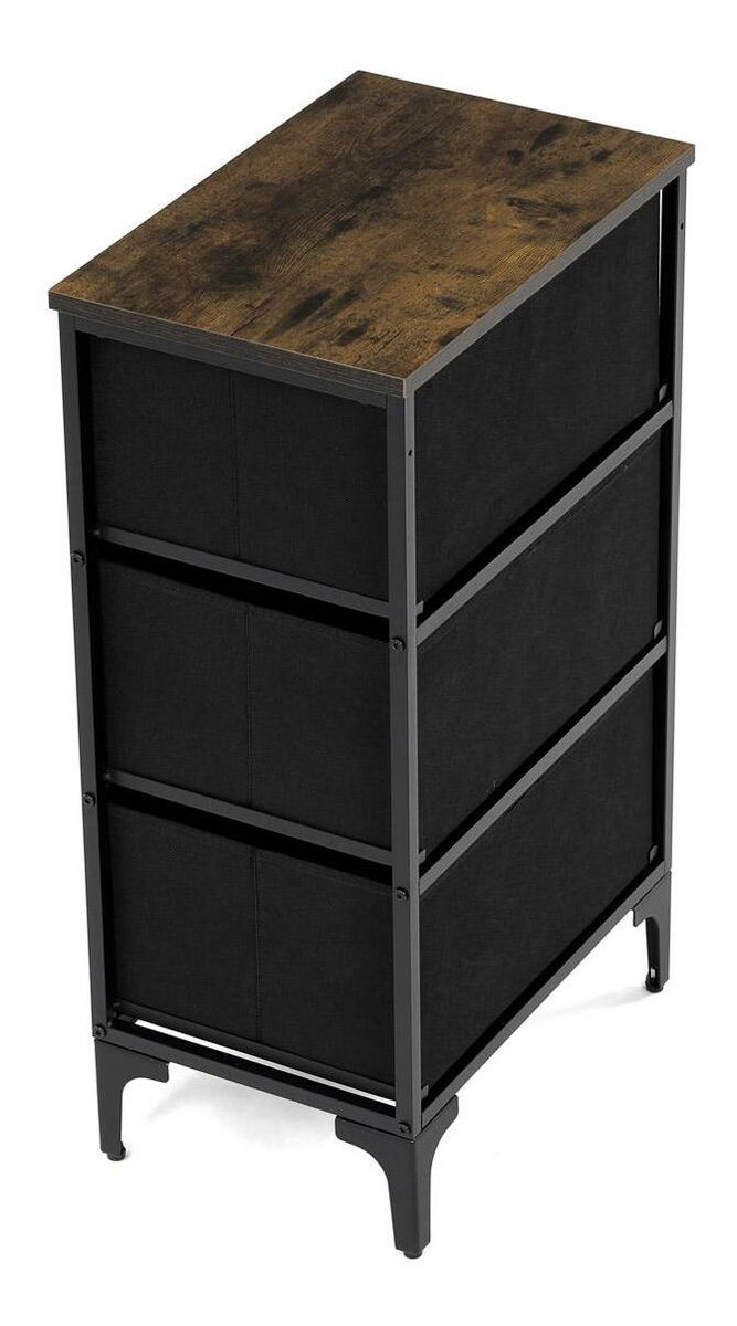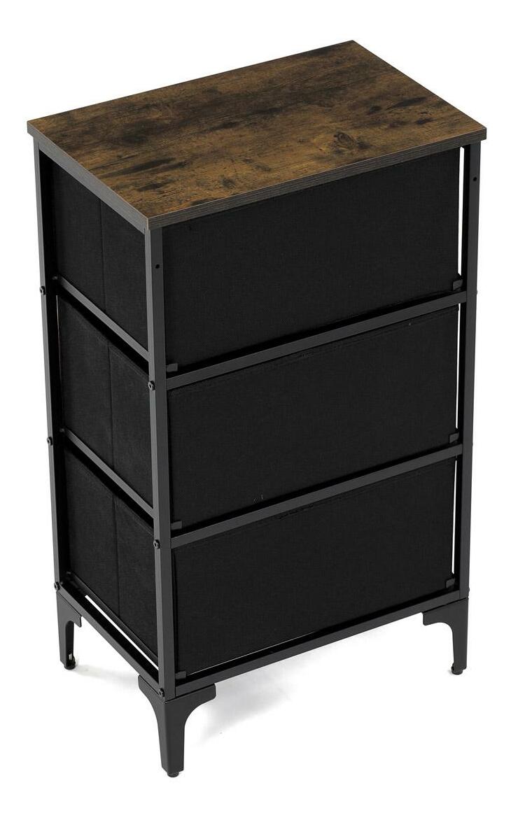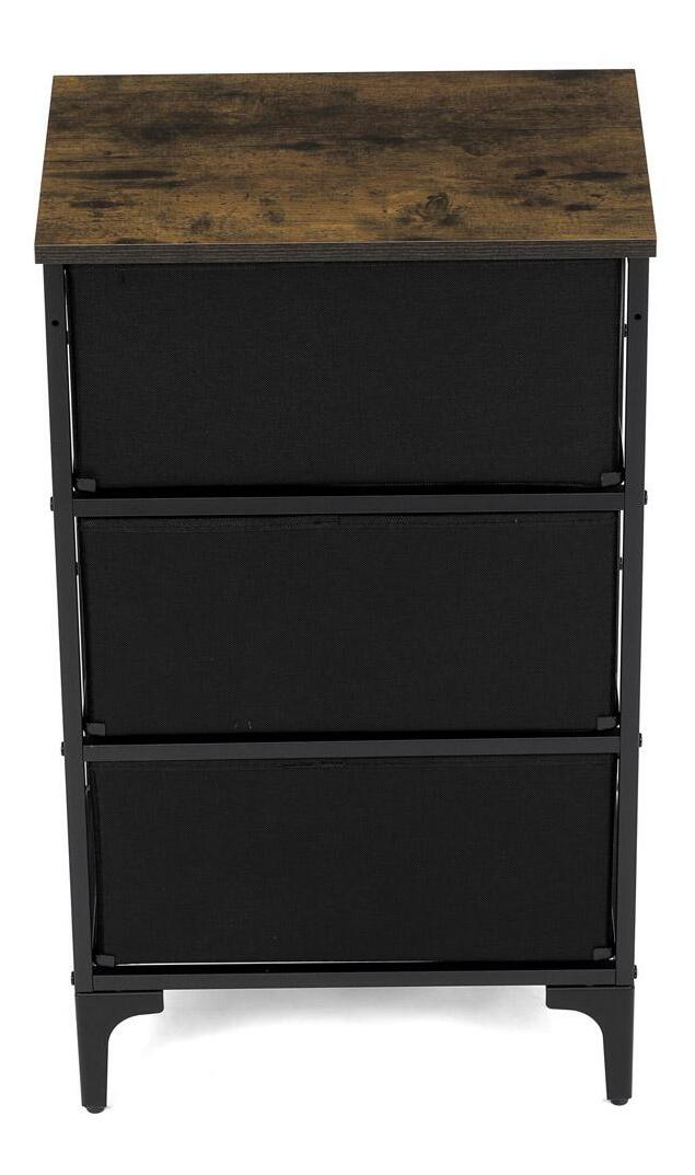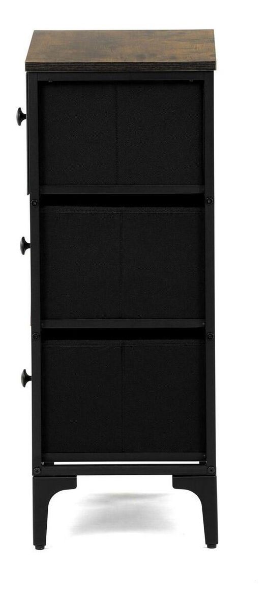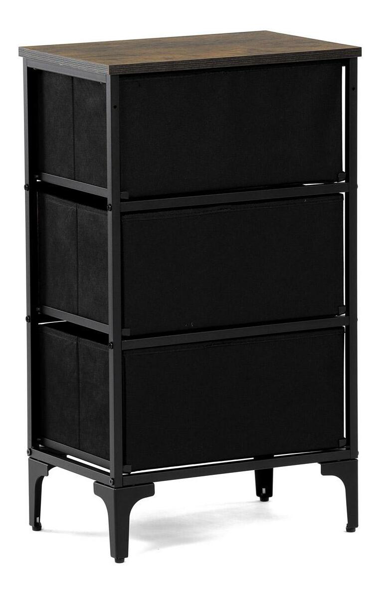 Retro komoda přinese do vašeho interiéru jedinečný styl a originalitu. Textilní čela zásuvek s výplní HDF a vintage potiskem navozují atmosféru starých amerických barů a jazzových klubů. Kombinace černé kovové konstrukce, prkna v dekoru starého dřeva a ozdobných nohou dodává nábytku robustní, ale zároveň elegantní vzhled. Korpus zásuvek je vyroben z netkané textilie s výplní HDF, což zajišťuje jejich lehkost a snadnou manipulaci. Ideální doplněk do obývacího pokoje nebo stylové kavárny, kde se stane nepřehlédnutelným prvkem.