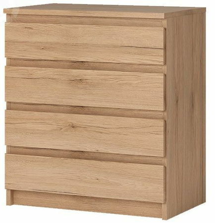 Klasická komoda se čtyřmi zásuvkami umístěnými nad sebou vybavena systémem bez úchytů. Provedení je typické viditelnou strukturou dřeva Dubu Sanremo.
