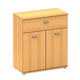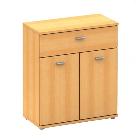 Univerzální dvoudveřová komoda s jednou zásuvkou, kterou je možné umístit do více typů místností a umí zastávat několik úložné role. Materiál je DTD laminovaná, barevné provedení je buk, uvnitř za dvířky se nachází jedna polička.