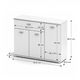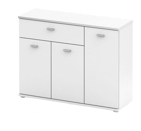 Univerzální komoda s jednou zásuvkou umístěnou v levém rohu se třemi dvířky, kterou je možné umístit do více typů místností a umí zastávat několik úložné role. Materiál je DTD laminovaná, barevné provedení je bílá barva, uvnitř za dvířky se nachází jedna polička.