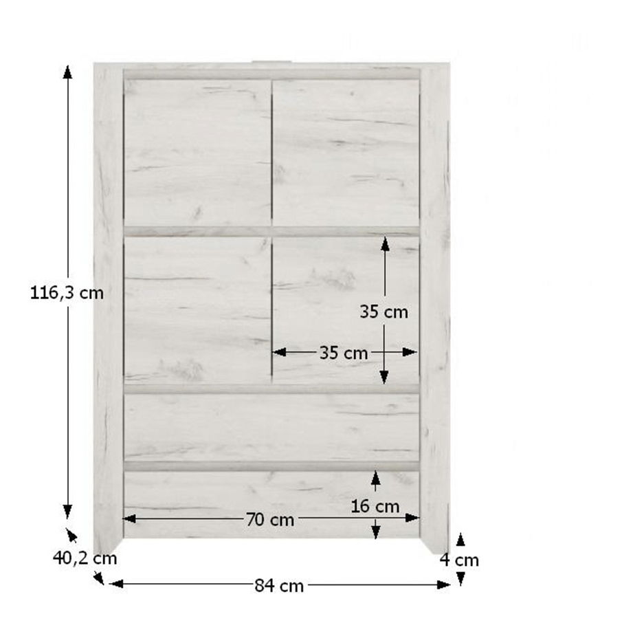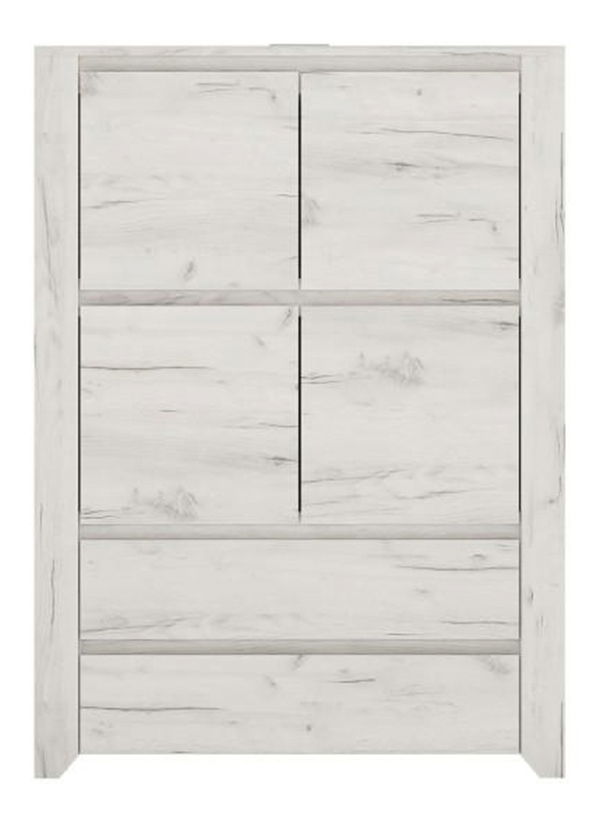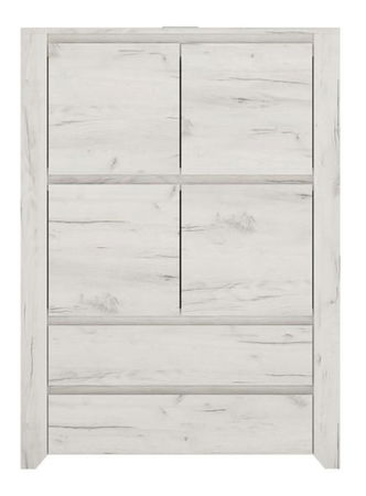 ZobrazitPraktická komoda v zajímavém barevném provedení bílá / craft nejlepší slouží zejména v dětských pokojích, studentských pokojích, nebo ložnicích. Ve vrchní polovině má komoda dvě uzavíratelné poličky a ve spodní části dvě zásuvky. Každá polička a zásuvka má nosnost 5 kg. Materiál: DTD laminovaná.