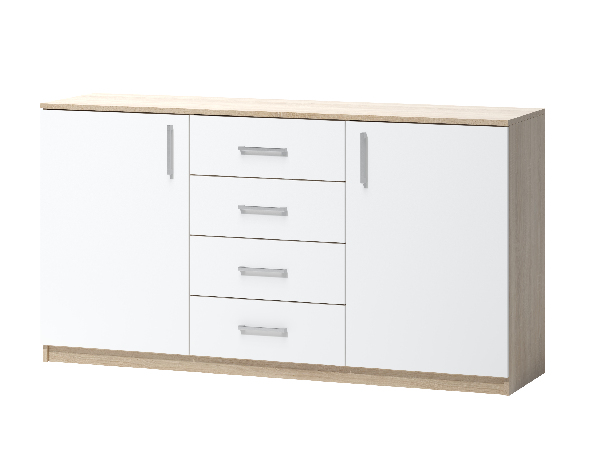 Prostorná moderní komoda, která bude ozdobou vaší domácnosti. Poskytne množství úložného prostoru na všechny věci, které nemáte kam uložit a hledají si své místo. Komoda má dvě skříňky a uprostřed čtyři zásuvky.