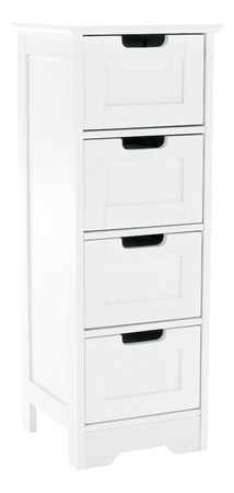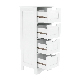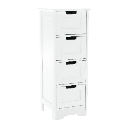 4-zásuvková komoda Atene 7 je součástí moderní koupelnové sestavy Atene. Hravě do ní uložíte vše potřebné, od hygienických potřeb po ručníky nebo různou kosmetiku. Přední čela mají vyřezané otvory, které nahrazují úchytky.