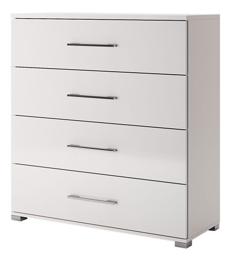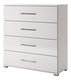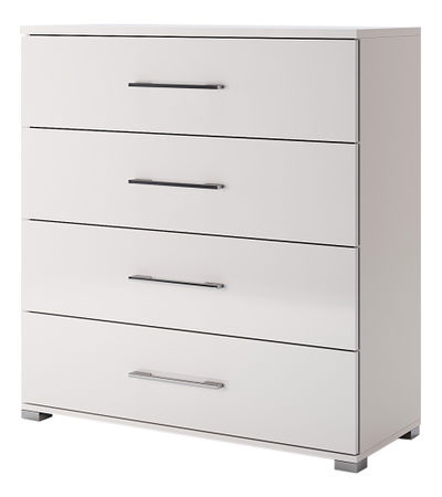 ZobrazitDíky komodě z řady Babylon bude vaše spodní prádlo dobře ukryto a vždy uspořádáno. Do čtyř plně vysouvacích zásuvek si můžete umístit kromě drobného šatstva také knihy, drobnosti nebo šperky. Svými rozměry dokonale zapadne do ložnice nebo i vstupní chodby. Zásuvky jsou vedeny kuličkovým vedením a díky tichému zavírání nevyrušíte spící polovičku. Komoda je postavena na nízkých stříbrných nožičkách. Úchytky zásuvek jsou podlouhlé a mají také stříbrnou barvu. Přední část zásuvek je provedena v bílé barvě ve vysokém lesku. Hrany nábytku jsou chráněny PVC a ABS hranou.