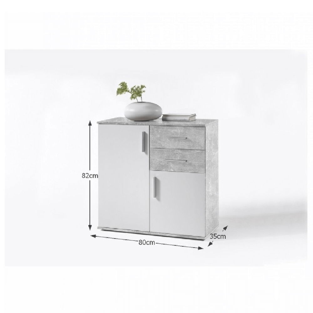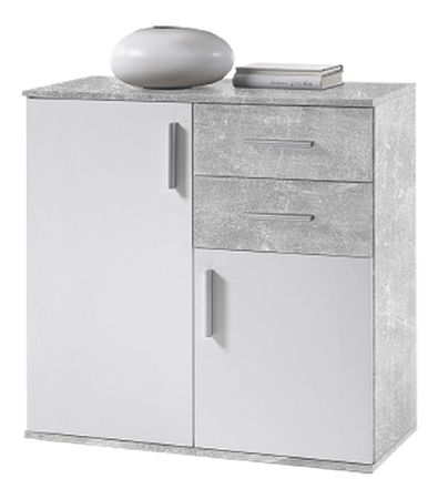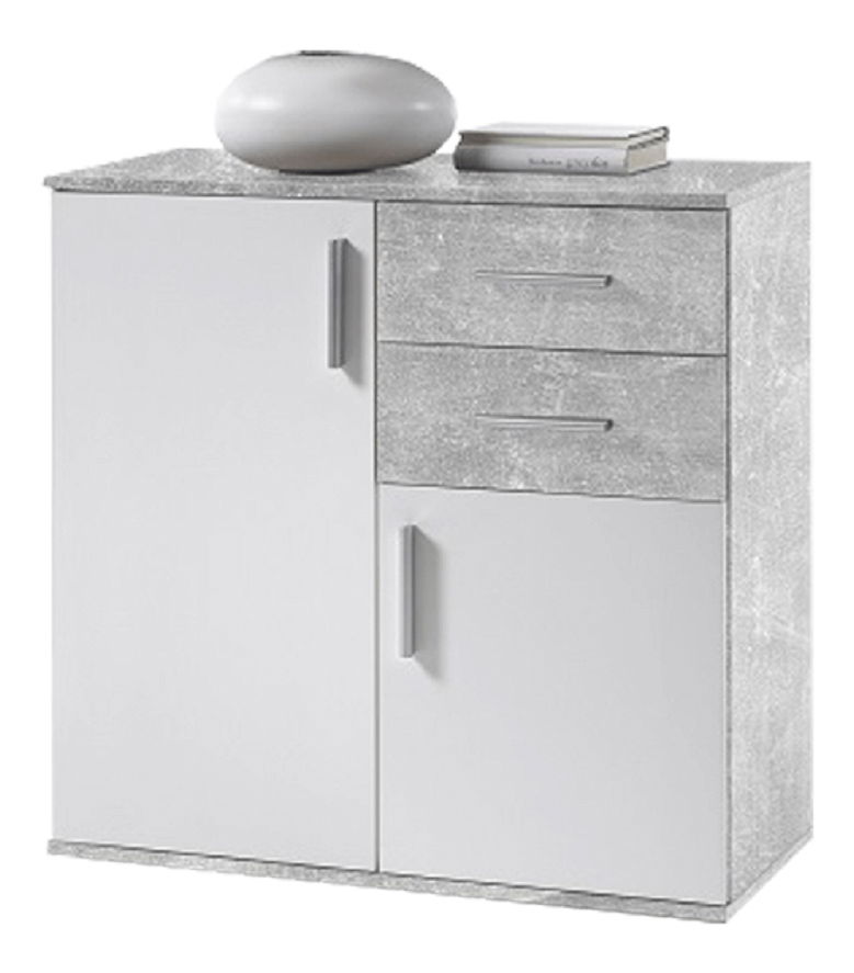 Menší, ale praktická komoda, do které si pohodlně uložíte Vaše oblíbené oblečení, povlečení, či další drobnosti. Komoda je dvoudveřová. Levá část je policí rozdělena na dva úložné prostory. V pravé dolní části se nachází menší skříňka bez police. Nad ní jsou dvě zásuvky. Krásné provedení komody bílá a v kombinaci s provedením beton rozzáří Vaše interiéry.