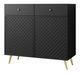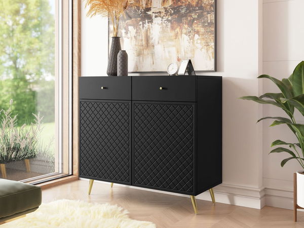 Komoda je ideální volbou pro ty, kteří hledají pohodlí a styl. Komoda do obývacího pokoje Borunti 2D2SZ se vyznačuje harmonickým tvarem a čistými proporcemi, díky čemuž je vhodná do malých i velkých místností. Její elegantní design v glamour klimatu upoutá pozornost a dodá zajímavý designový akcent. Charakteristickým znakem tohoto modelu je ozdobné frézování. V kombinaci se zlatými úchyty působí mimořádně stylově. Estetické provedení však není všechno. Komoda má také praktické aspekty, jako například prostorný vnitřní prostor a vysoké nožičky, které usnadňují udržování pořádku pod nábytkem. Kombinace uzavřených skříněk a zásuvek umožňuje uložit různé předměty, od dokumentů po oblečení a prádlo, jakož i dekorace nebo bytový textil. S komodou Borunti glamour získá váš interiér třídu a funkčnost. Rozměry: šířka: 100 cm výška: 92 cm hloubka: 42 cm Provedení: korpus: 16 mm silná laminovaná deska čela: 16 mm MDF deska hrany: ABS a melamin kuličková ložiska úchyty a nohy: kov ve zlaté barvě hladká čela - otevírá "PUSH TO OPEN" Rozměry výrobku jsou uvedeny v centimetrech a mohou se lišit od skutečných o ± 3 cm. Rozměry nábytku neměníme na přání zákazníka Záruka: 24 měsíců