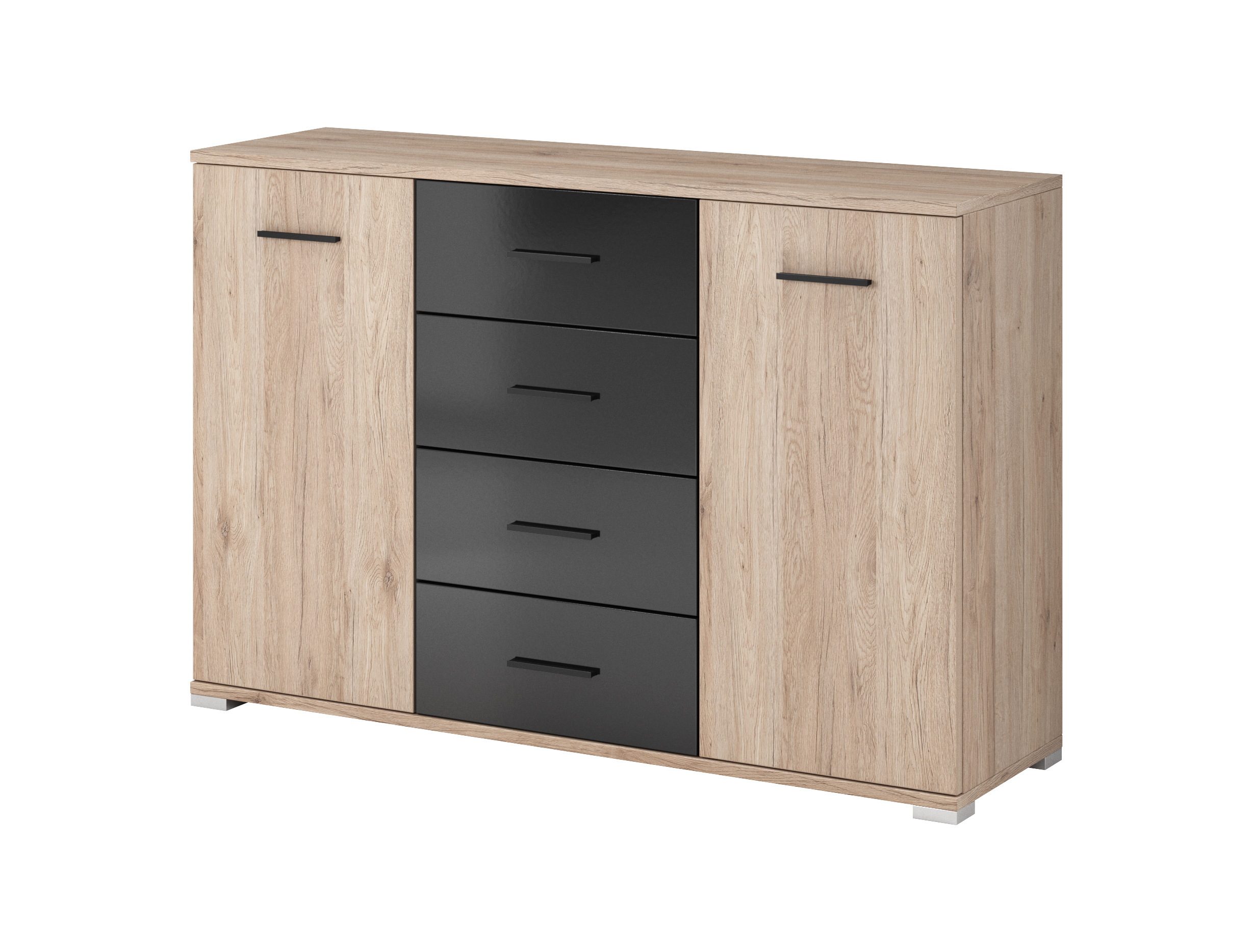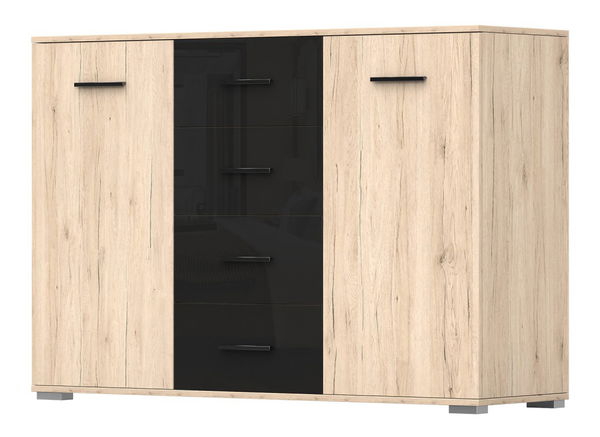 Komoda Bargo 2D4S o výšce 91 cm a hloubce 42 cm v odstínu San remo písková + černá je praktickým a elegantním doplňkem do každé domácnosti. Vnější materiál komody je vyroben z kvalitní dřevotřísky o tloušťce 16 mm a vnitřní materiál z dřevotřísky o tloušťce 22 mm. ABS hrany o tloušťce 0,5 mm a 1,7 mm dodávají komodě pevnost a odolnost. Komoda Bargo 2D4S disponuje 2 zásuvkami a 4 dvířky, díky čemuž poskytuje spoustu úložného prostoru pro uložení věcí. Je vhodná jako úložný nábytek do každé místnosti v domě nebo bytě.