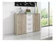 V případě, že potřebujete zvětšit úložný prostor v bytě, komoda je tím pravým řešením. Uprostřed se nacházejí čtyři praktické zásuvky a po stranách jsou umístěny skříňky. V každé z nich je jedna polička. Podlouhlé úchyty usnadňují otevírání skříněk a zásuvek a navíc dotvářejí celkový elegantní design komody.