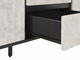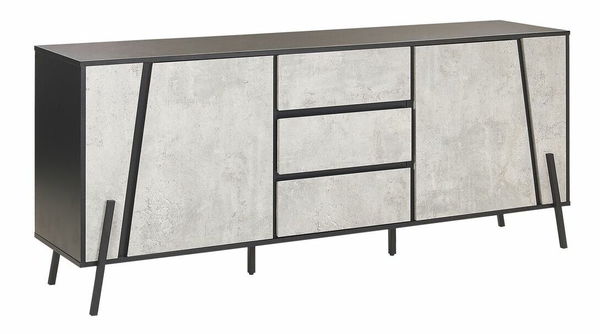 Tato komoda v moderním designu, inspirovaná skandinávskými tvary, se stane designovým kouskem v každém současném, minimalistickém a tradičně zařízeném obývacím prostoru. Klasický obdélníkový tvar a povrch v betonovém vzhledu doplňuje černý vršek a tenké kovové nohy, které celému kusu dodávají industriální nádech. Komoda má prostorné skříňky a šuplíky na všechny vaše doplňky a další drobnosti.