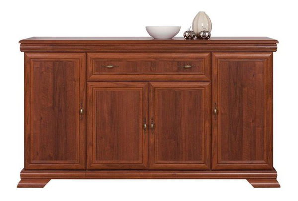 Nábytek je vyráběn z kvalitní laminované DTD, dvířka a ozdobné lišty jsou z MDF, vše v odstínu honosného ořechu Ecco. Svou eleganci a dominanci naplno projeví ve velkých místnostech a světlých prostorách starších domů s vysokými stropy. Určitě se bude dobře vyjímat v obývacím pokoji, ale můžete si jím zařídit ložnici, reprezentativní pracovnu, předsíň. Nábytek vyniká masivními nožkami vyčnívajícími do strany, různými klasickými ornamenty a najdete na něm úchyty z kovu. Pro ty, co milují starý klasický styl.