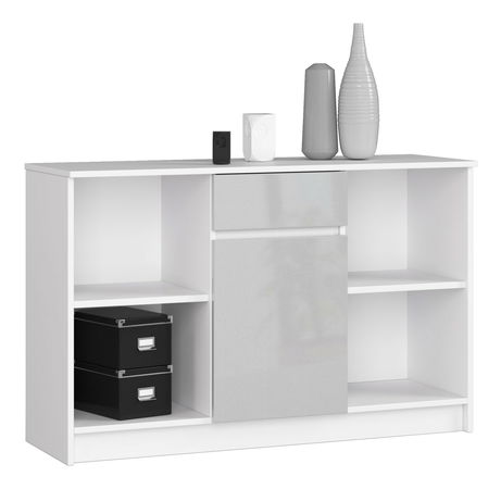 ZobrazitDíky modulární konstrukci komody ji můžete zkombinovat s jiným segmentem sestavy a vytvořit tak pohodlný rohový psací stůl. Skvěle poslouží také jako samostatný kus nábytku. Střední část komody tvoří jedna zásuvka a uzamykatelná dvířka umožňující snadné skladování. Kromě toho má čtyři samostatné, symetrické police s dostatkem prostoru pro vystavení. Komoda je dlouhá 120 cm a vysoká 77 cm, vyrobena z laminované desky. Komoda byla navržena tak, aby se hodila do většiny místností. Může být zajímavým prvkem výzdoby obývacího pokoje, poslouží jako funkční kus nábytku pro odkládání věcí v ložnici a lze jej použít i jako doplňkový kuchyňský segment. Díky neutrální barvě a minimalistickému designu se stane atraktivním a především funkčním doplňkem každého interiéru. Čela zásuvek a dvířek jsou vyrobena z laminované desky. Zásuvka se pohybuje na kovových válečkových vodítkách. Okraje pokryté ABS hranami zajišťují vysokou ochranu proti poškození. Možnost vytvoření sestavy - rohový psací stůl s psacím stolem Bahar. Dostupný ve více barevných provedeních.
