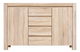 Komoda praktických rozměrů se čtyřmi zásuvkami a úložným prostorem po stranách s poličkou.