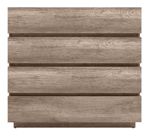 Krásná komoda se čtyřmi zásuvkami, která přinese do vašich příbytků kousek přírody a moderního designu. Zásuvky komody nemají úchyty. Barevné provedení komody je dub monument.
