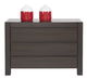 Tmavé zbarvení wenge zdůrazňuje velkolepost formy. Masivní charakter koresponduje s úložnou kapacitou nábytku. Něžnou ozdobou je lineární uspořádání štěrbin mezi čely tvořícími úchyt. Modelová řada August je vhodná na zařízení obývacích pokojů, ložnic, jídelen a pracoven.