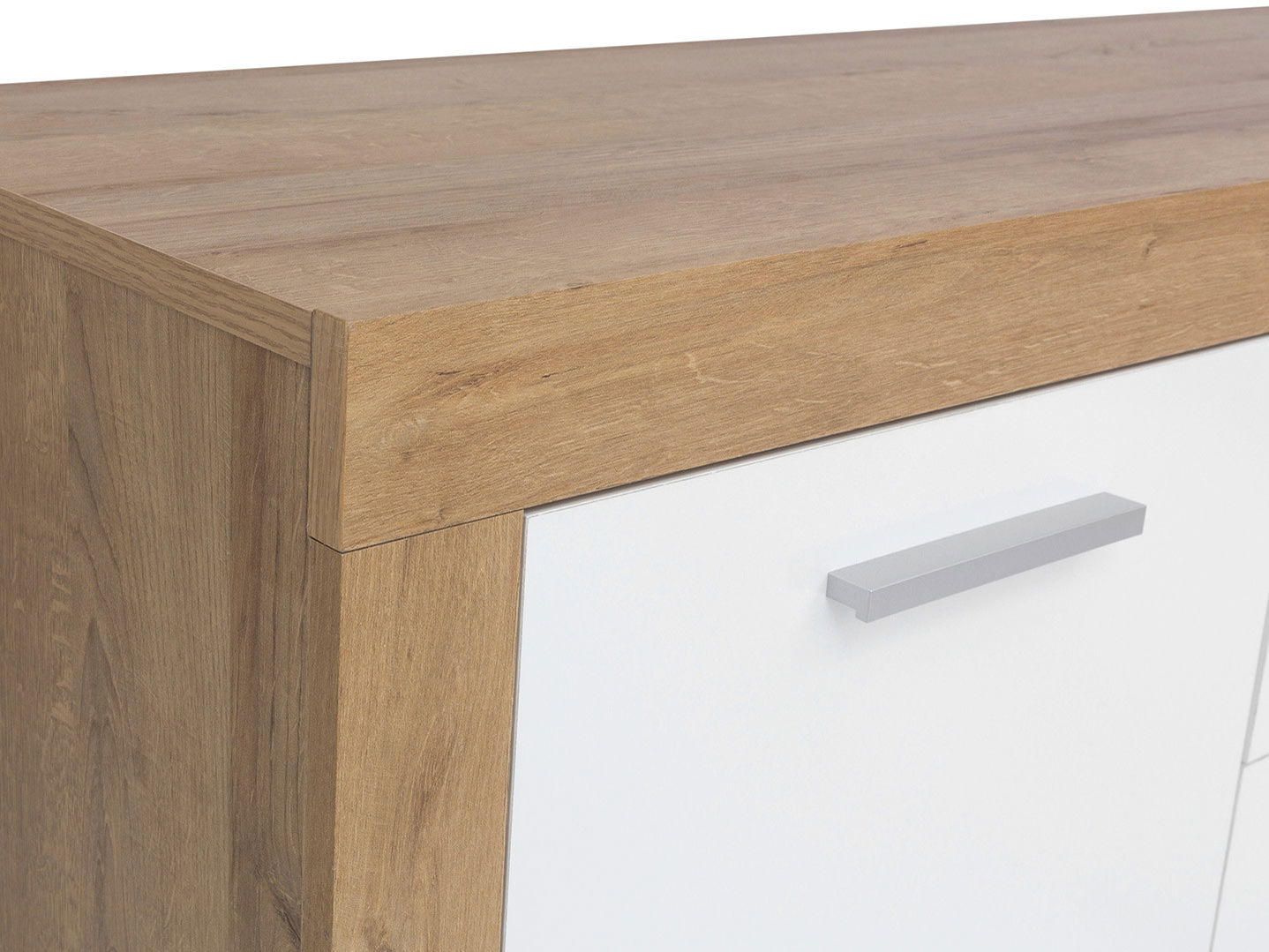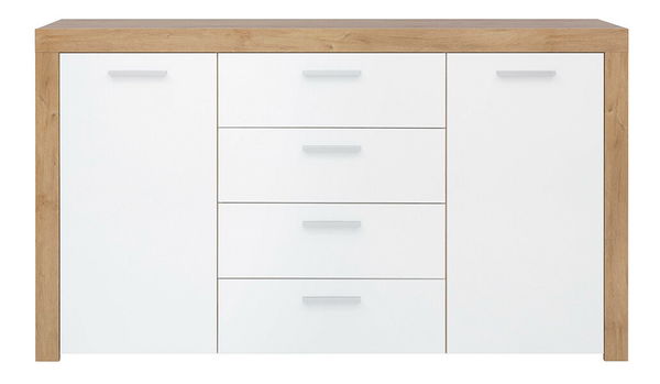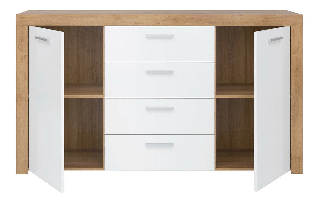 ZobrazitV domácnosti se Vám jistě bude hodit tato praktická komoda se dvěma dvířky a čtyřmi zásuvkami. Ať už si potřebujete uložit oblečení, prádlo, nebo jiné doplňky, poskytne Vám dostatek úložného prostoru. Dvířka a zásuvky mají tenčí podlouhlé úchyty.