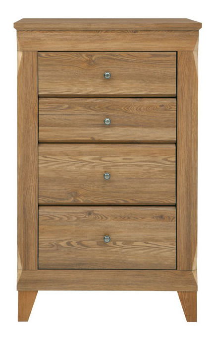 Kompaktní komoda s šířkou 72 cm se 4 zásuvkami je vhodná na ukládání menších věcí a své místo najde v šatníku, obývacím pokoji iv ložnici. Stylová komoda je vyrobena z MDF desky potažené odolným laminem. Zásuvky mají speciální brzdy, které je zpomalují v poslední fázi zavírání a tak se zavřou bez bouchnutí.