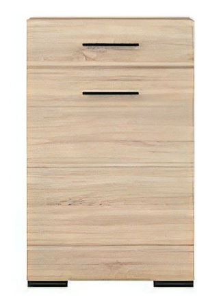 Moderní komoda s jednou zásuvkou a jedněmi dveřmi. Skříňka také disponuje uvnitř dvěma policemi. Pevný a stabilní rám se nese v barvách dubu sonoma s cen jednoduchými nožičkami, které jsou v černé barvě.