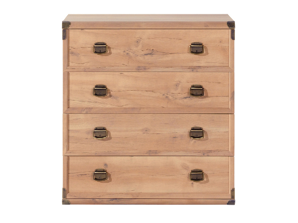 Širší komoda originálního westernového designu, kterou lze vybavit studentské a dětské pokoje. Má čtyři praktické zásuvky. Každá zásuvka má po dva kované úchyty.