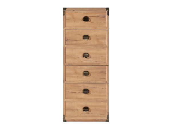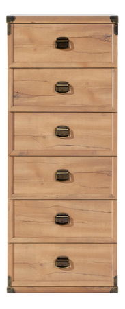 Úzká komoda, která vás osloví především designem čerpající z prostředí Divokého západu. Proto je komoda vhodná zejména do studentských nebo dětských pokojů. Komoda má šest zásuvek pod sebou.