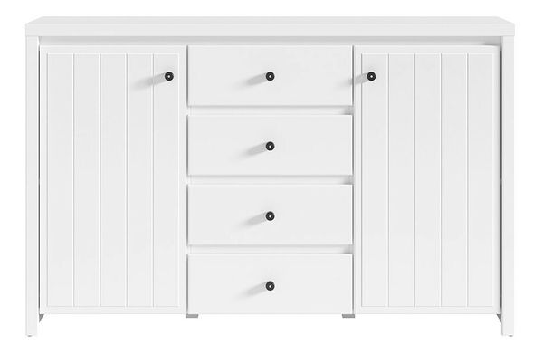 Velmi praktická a na pohled příjemná komoda Karet je to pravé do Vašeho interiéru. Komoda je rozdělena na tři části, přičemž na vnějších stranách jsou umístěny skříňky a uprostřed zásuvky. Komoda obsahuje čtyři zásuvky a dvě skříňky. Skříňky obsahují jednu polici.