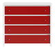 Moderní a vzhledná komoda Karet je vynikající pomocník do Vašeho interiéru. Prostor na ukládání věcí tvoří čtyři zásuvky umístěné na válečkových kolejničkách.