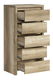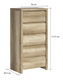 Úzká komoda s pěti praktickými zásuvkami. Osloví vás zejména čistým a minimalistickým designem, který se výborně hodí do moderně zařízených interiérů. Poskytne vám dostatek úložného prostoru pro všechny drobnosti a doplňky. Zásuvky mají zkosené horní hrany pomocí kterých se otevírají.