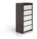 Úzká komoda s pěti praktickými zásuvkami. Osloví vás zejména čistým a minimalistickým designem, který se výborně hodí do moderně zařízených interiérů. Poskytne vám dostatek úložného prostoru pro všechny drobnosti a doplňky. Zásuvky mají zkosené horní hrany pomocí kterých se otevírají.