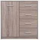 Komoda se čtyřmi zásuvkami a jedněmi dvířky.