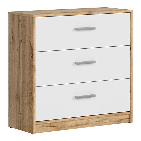 ZobrazitKomoda Matos KOM3S (dub wotan + bílá) o výšce 78.5 cm a hloubce 34 cm je skvělým doplňkem do vašeho obývacího pokoje nebo ložnice. Tato praktická komoda poskytuje dostatek úložného prostoru díky 3 zásuvkám. Je vyrobena z kvalitní nábytkové desky a její barevné provedení v dub wotan s bílou barvou dodává vašim místnostem stylový vzhled. Montáž komody je velmi jednoduchá a rychlá. Tato komoda je ideální volbou pro ty, kteří hledají praktické a stylové řešení pro svůj domov. Zvolte si kvalitu a nechte se okouzlit touto skvělou komodou Matos KOM3S.