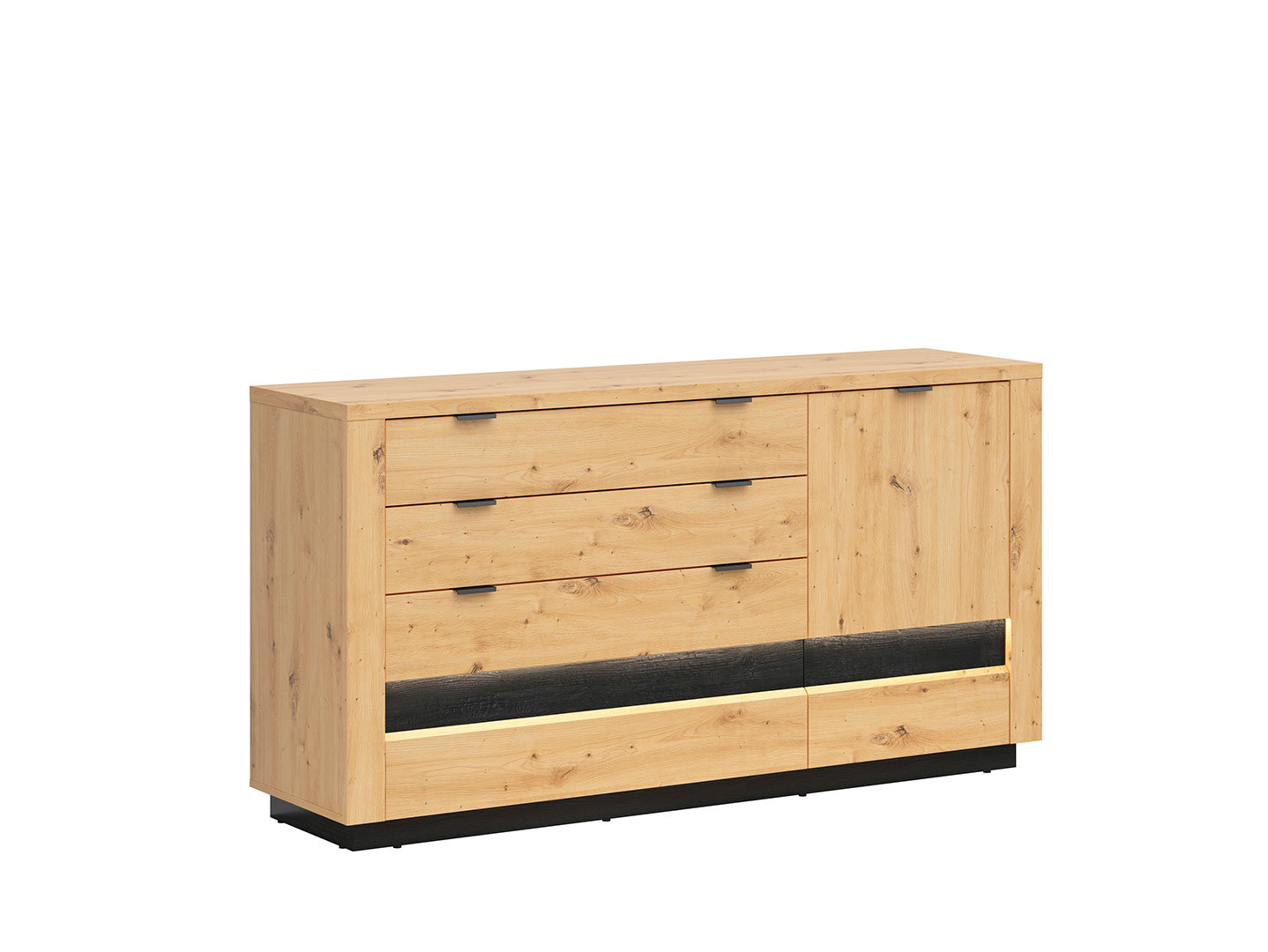 Komoda BRW Ostia KOM1D4S (dub artisan + dub černý) (s LED osvětlením)