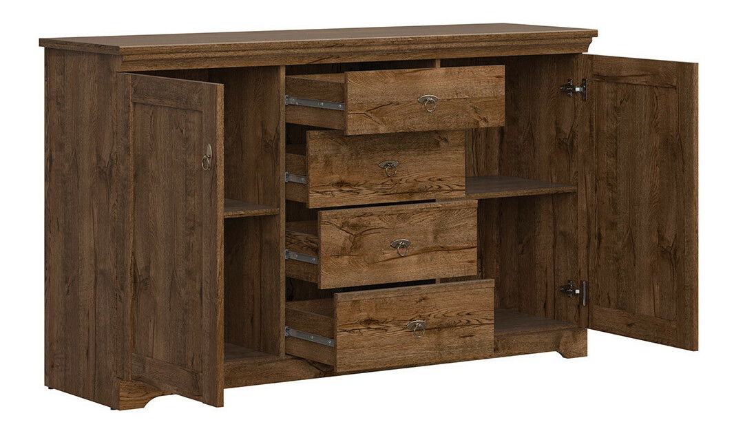 ZobrazitCo očekáváte od nábytku? Komoda Patras je synonymem kapacity a funkčnosti. Díky 2 vnějším skříněmi a 4 zásuvkám v centrální části můžete pohodlně organizovat běžné položky. Výhodou nábytku je jeho hluboké zabarvení dubového dubu, které přinese do interiéru nějaké teplo.