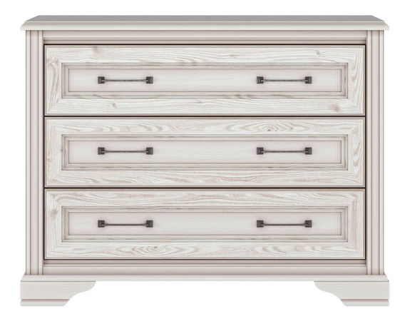Stylová komoda pro uložení oblečení, doplňků a jiných drobností. Má tři prostorné zásuvky, které poskytnou prostor pro ponožky, kalhoty či trička. Vrchní desku můžete využít k vystavení fotografií, dekorací nebo vázu. Zásuvky se otevírají pomocí černých úchytů.