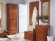 Patinování, vzor intarsie, zhotovený technikou serigrafie, bohatě vyřezávané dvířka, sokl, vlisy a lišty, použití v klasické sestavě nábytku v barvě třešeň antik. Vše vyrobeno pomocí moderní technologie, což umožňuje překvapivě atraktivní ceny při velkém objemu zdobení. 34 prvků v barvě třešeň antik.