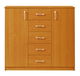 Komoda pěkného moderního designu, která vám poskytne dostatek úložného prostoru. Komoda má dvoje dvířka a pět menších zásuvek uprostřed. Zajímavé jsou i kovové perforované úchyty dvířek a zásuvek.