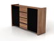 Dvoudveřová komoda se čtyřmi zásuvkami. Dvířka, lesklé černé a zásuvky v barvě ořech Merano.