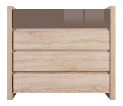 Komoda KOM4S ze série Venom mix Vám poskytne ve 4 zásuvkách požadovaný úložný prostor a navíc bude svým designovým a barevným provedením krásným doplňkem do Vašeho intriéru. Komoda je k dispozici v barevném provedení dubového dřeva v kombinaci s bílou nebo šedou barvou první zásuvky. Komoda je vyrobena z kvalitních materiálů.