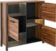 Členitá komoda Buena. Nápadité rozdělení skřínek a polic v jednom kusu nábytku. Nábytek s nádechem starého stylu, gramofonových desek ze série Buena. Vhodný do obývacího pokoje i kanceláře. Nabízíme k dokoupení LED osvětlení.