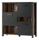 Členitá komoda Buena. Nápadité rozdělení skřínek a polic v jednom kusu nábytku. Nábytek s nádechem starého stylu, gramofonových desek ze série Buena. Vhodný do obývacího pokoje i kanceláře. Nabízíme k dokoupení LED osvětlení.