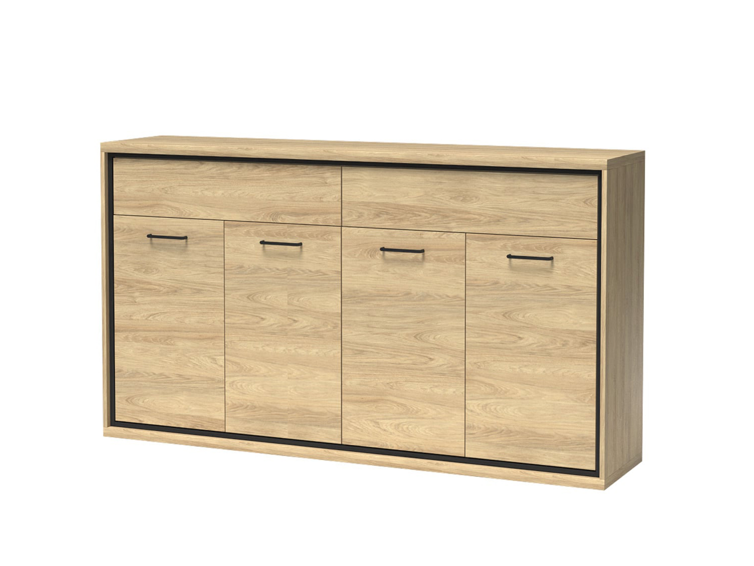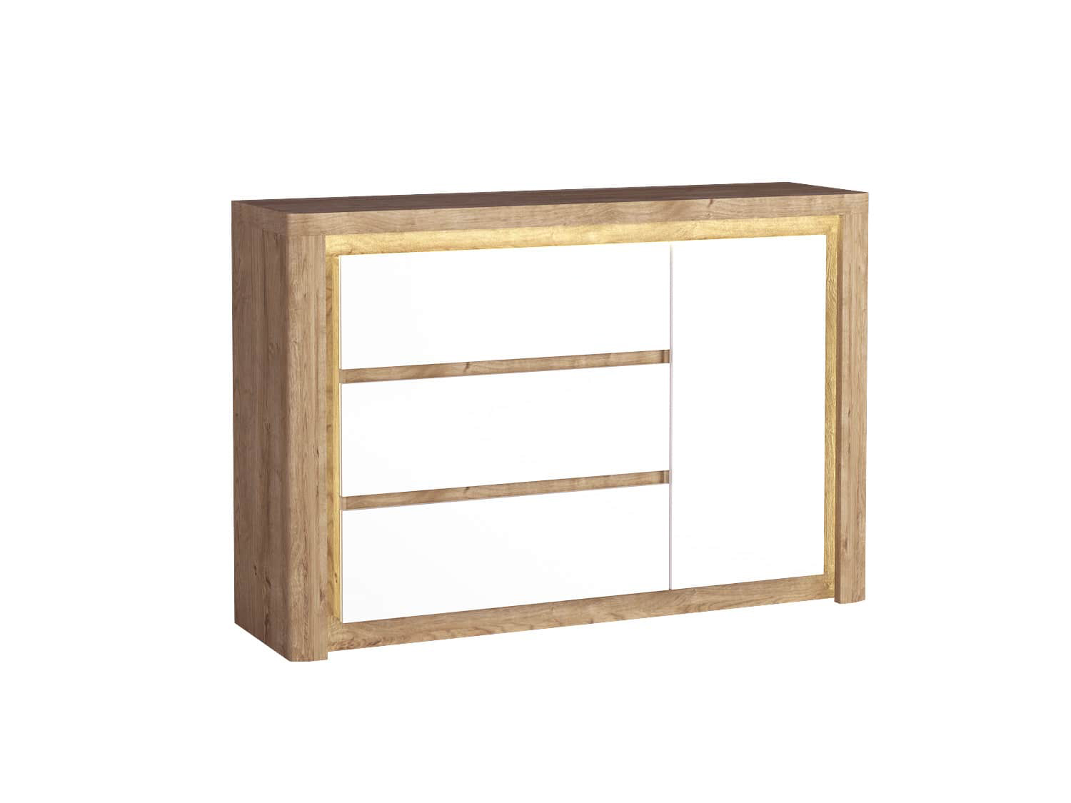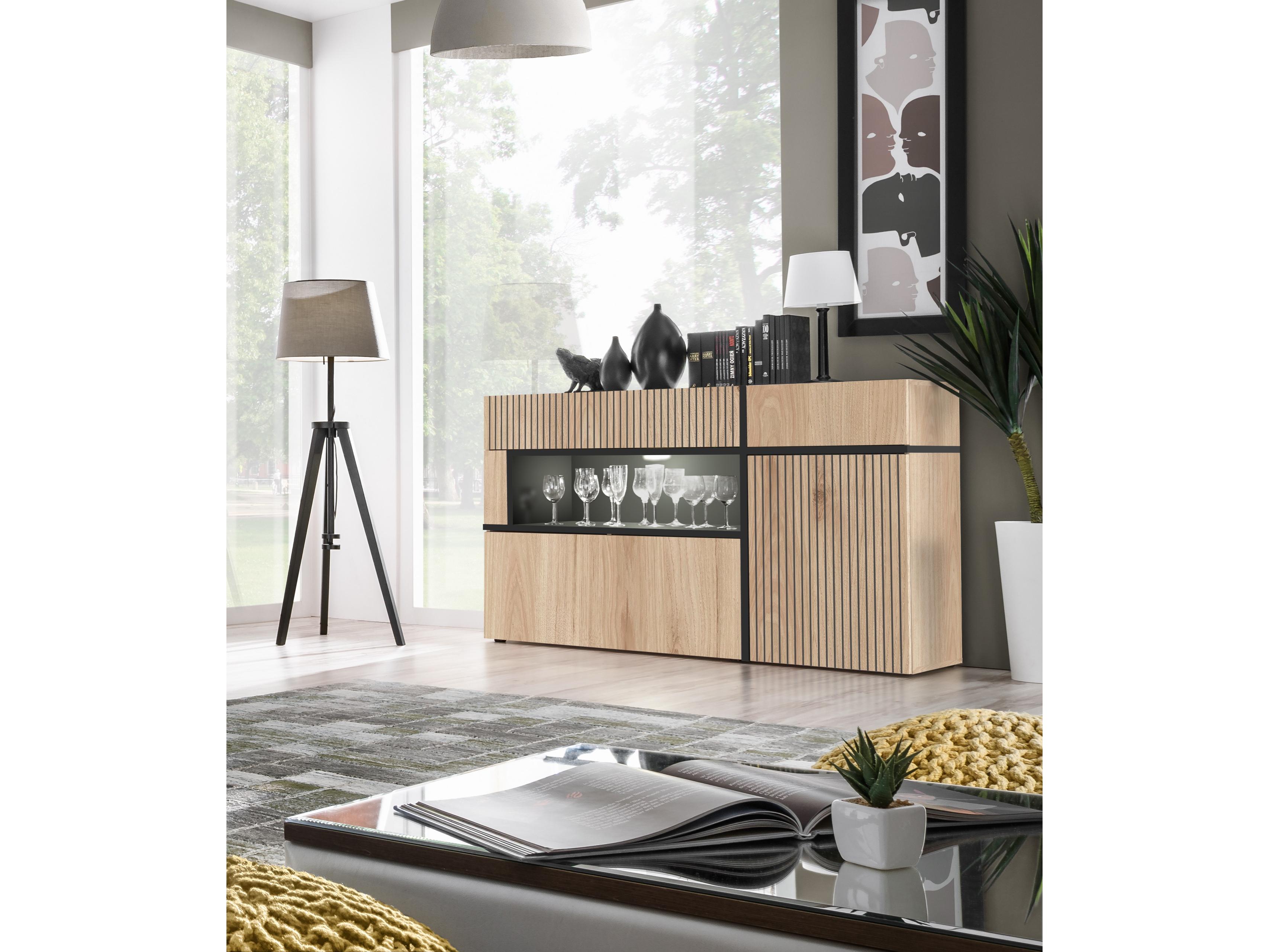 Komoda Carlyn (hikora jackson + černá) (s LED osvětlením)