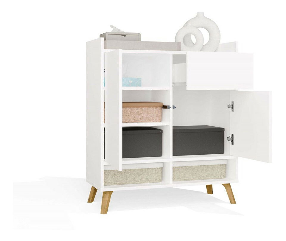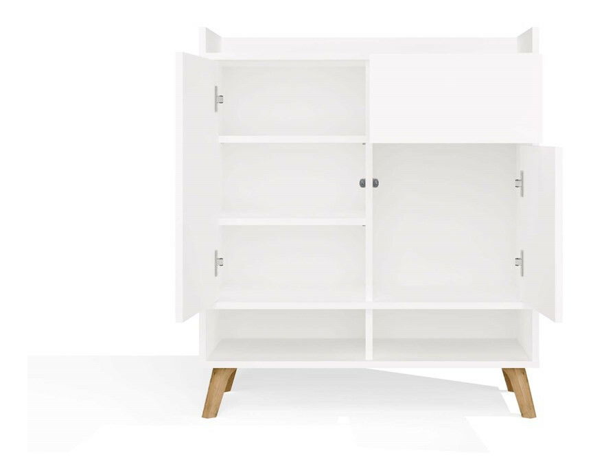 ZobrazitKomoda Celebrara 1 v elegantní bílé barvě je ideálním řešením pro moderní interiéry, přičemž její minimalistický design a vysoké nožičky ve stylu skandinávie dodávají lehkost a sofistikovanost. Se dvěma dveřmi a jednou zásuvkou nabízí dostatek úložného prostoru, přičemž vrchní okraje zabraňují pádu předmětů. Vyrobená z odolné laminované dřevotřísky, je nejen funkční, ale také snadno udržovatelná. Tato komoda je skvělou volbou do obývacího pokoje, ložnice či dětského pokoje, kde skvěle zapadne do každého prostředí.