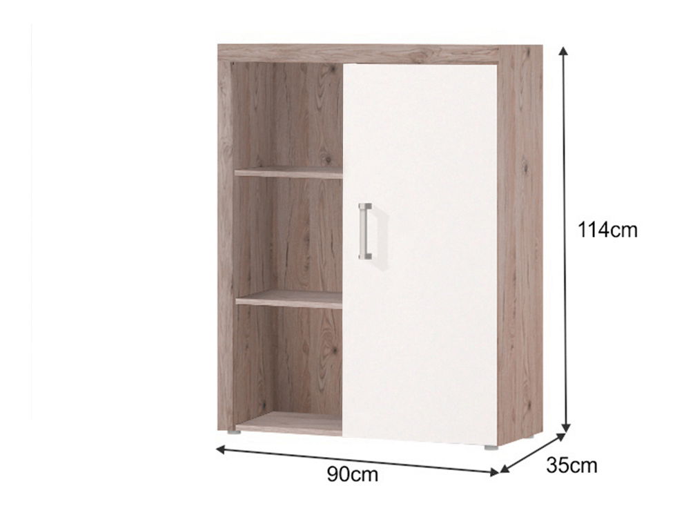 Nekupujte zbytečně drahou komodu, raději investujte do vaší sbírky! Vsaďte na kvalitu policové komody CHERIS 3. Je 1-dveřová s policemi. Na pravé straně jsou plné dvířka, levá strana je bez dveří, regálového typu.