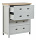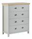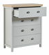 Tato funkční komoda se čtyřmi prostornými zásuvkami poskytuje dostatek prostoru pro uložení oblíbených knih, kabelů a dokumentů. Tento stylový kus nábytku má vrchní desku s dřevěným efektem a trendový matný světle šedý odstín, díky čemuž se hodí do obývacího pokoje či ložnice laděné v tradičním či skandinávském stylu.
