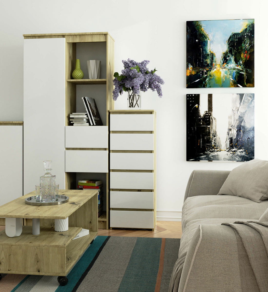 Komoda Cipriano IV (dub artisan + bílá)
