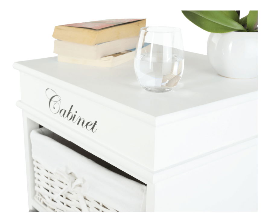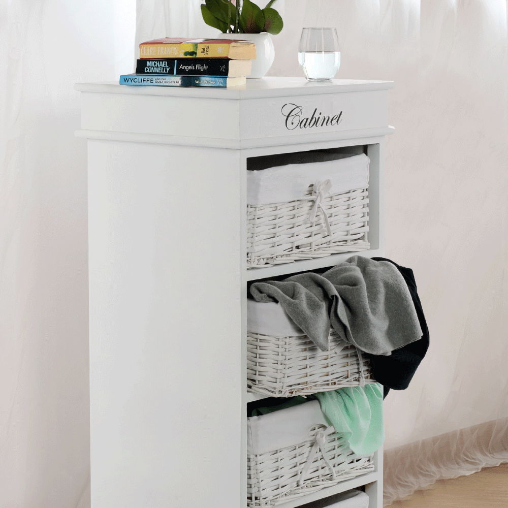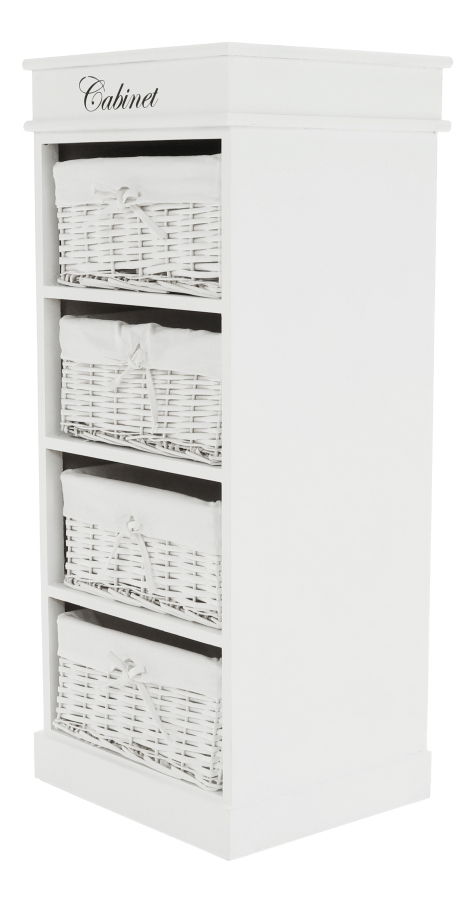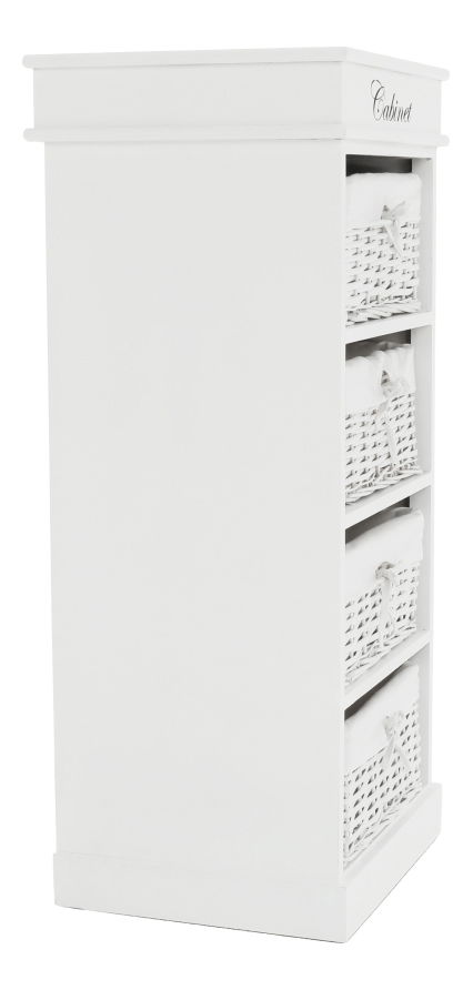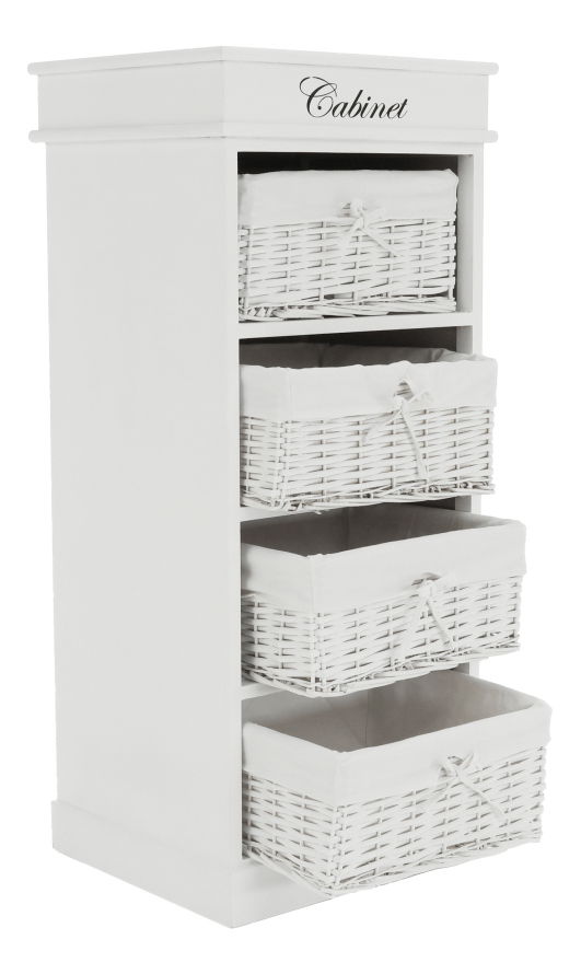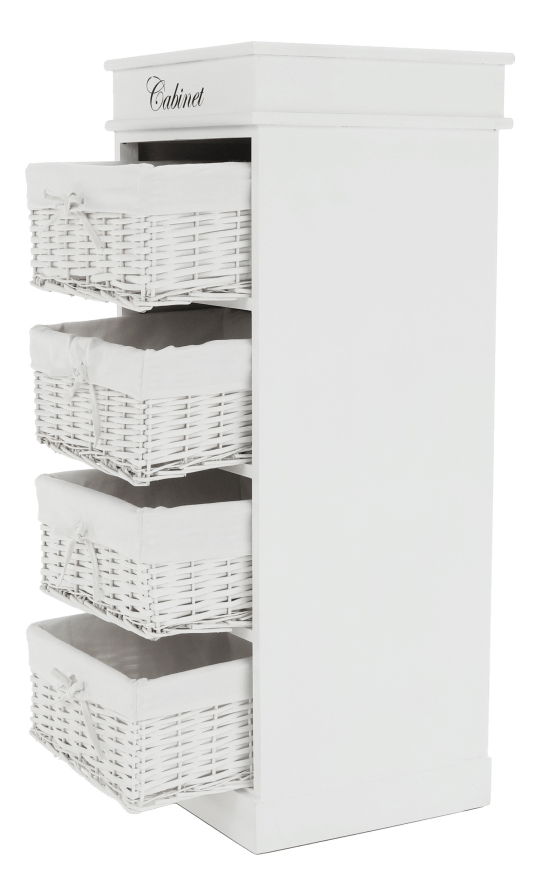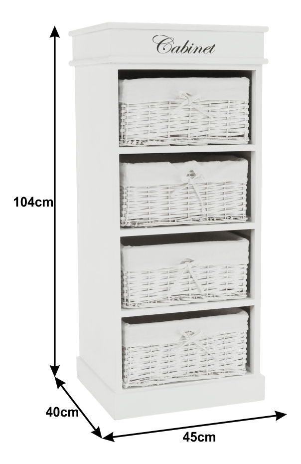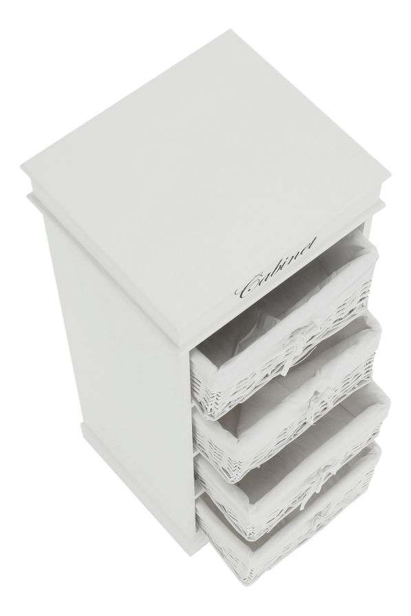 Komoda Clap je ideální kus nábytku pro každou domácnost, která hledá kombinaci stylu a funkčnosti. Tato komoda má výšku 104 cm a hloubku 40 cm. Je vyrobena z kvalitního dřeva, proutí a látky a má elegantní bílé provedení, které přidává do každé místnosti jemnost a svěžest. Je ideální pro uskladnění všech vašich věcí a dokonale se hodí k ostatnímu nábytku v domě. S rozmoři 45x40x104 cm se snadno vejde do každého pokoje. Komoda je dodávána v demontu, ale její sestavení je velmi jednoduché. Vyberte si tuto kvalitní komodu a získejte stylový a praktický kus nábytku pro váš domov.