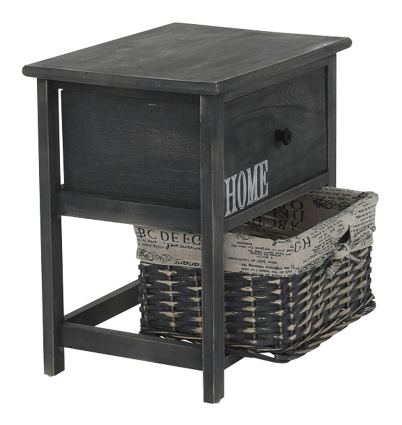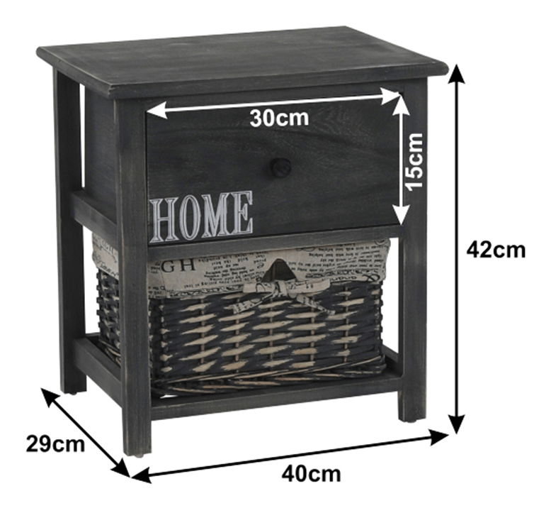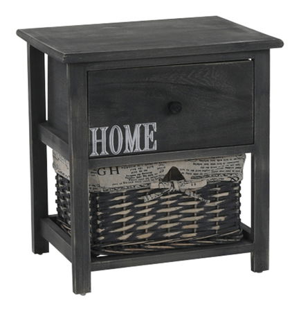 Tuto komodu ocení zejména milovníci tradičního rustikálního stylu a přírodních materiálů. Dá se využít nejen v předsíni, ale hodí se i do obývacích pokojů, nebo ložnic jako noční stolek. Má jednu zásuvku a proutěný košík na odkládání drobných předmětů. Barevné provedení komody je šedohnědá.