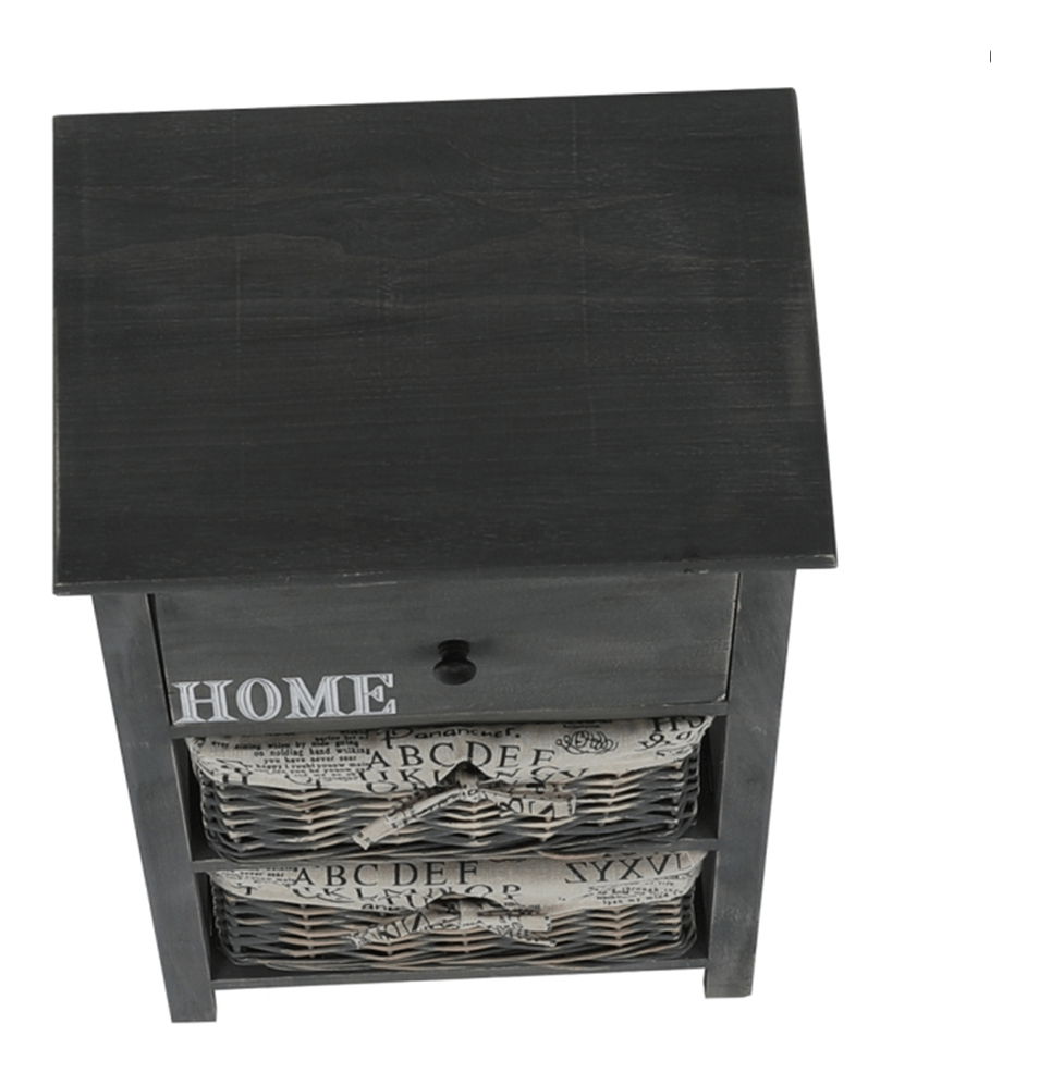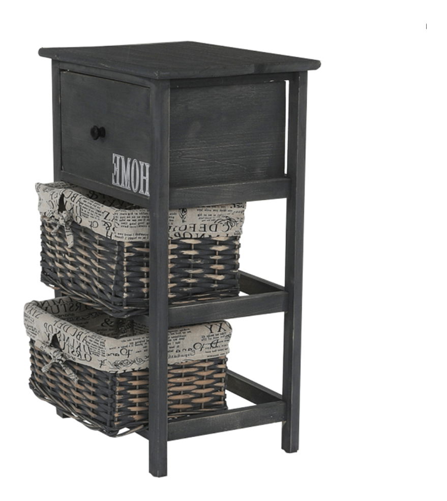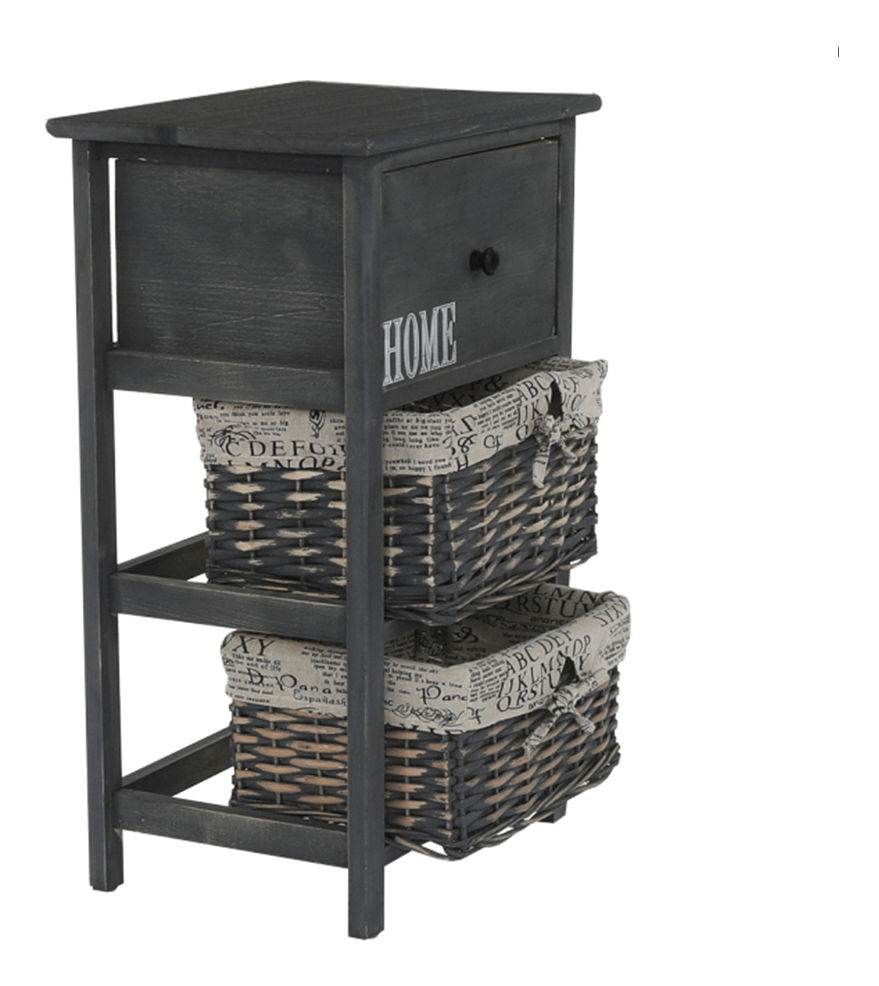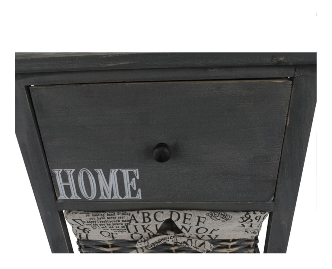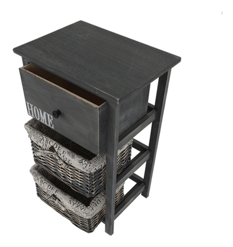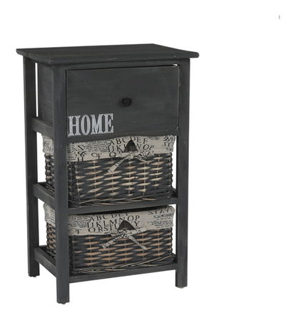 Tuto komodu ocení zejména milovníci tradičního rustikálního stylu a přírodních materiálů. Dá se využít nejen v předsíni, ale hodí se i do obývacích pokojů, nebo ložnic jako noční stolek. Má jednu zásuvku a dva proutěné košíky na odkládání drobných předmětů. Barevné provedení komody je šedohnědá.