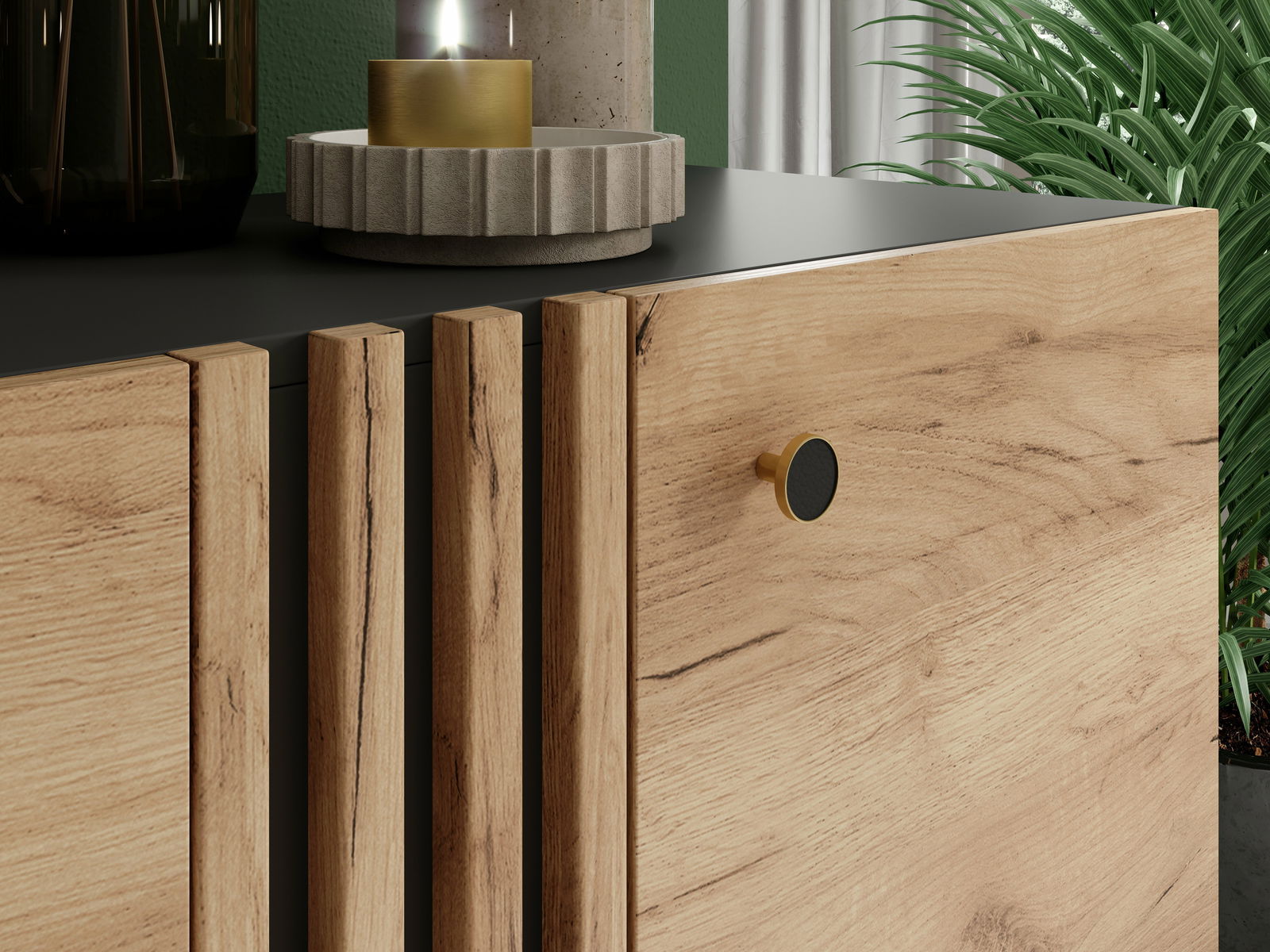 Komoda Dalde D4S (dub craft zlatý + antracit)
