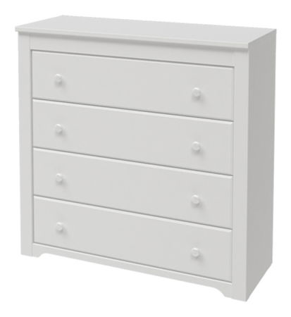 Komoda se 4 zásuvkami vyrobena z laminované dřevotřískové desky a MDF desky. Nosnost každé zásuvky je 15 kg.