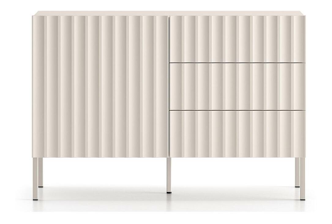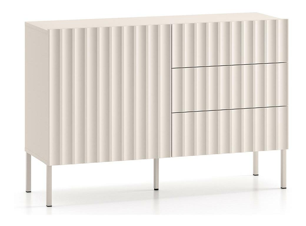 ZobrazitHledáte jedinečný, moderní a zároveň funkční nábytek do vašeho interiéru? Kolekce splní všechna vaše očekávání Komoda se šuplíky s jedinečným designem dokonale zapadne do moderních a minimalistických interiérů. Světlá béžová barva mu dodává jemný šarm, který se perfektně hodí k většině aranžmá. Celá kolekce se vyznačuje rafinovaným detailem v podobě drážkovaných předních dílů, které dodávají každé místnosti jedinečný vzhled. Je navržen s ohledem na funkčnost a má tři prostorné zásuvky a dvě police, do kterých můžete snadno umístit různé druhy předmětů v závislosti na vašich potřebách. Položením korpusu na stabilní kvé nohy v barvě nábytku to celé působí lehce a velmi styl. Kolekce je nejen praktickým úložným řešením, ale také designovým prvkem, který zdůrazní individuální styl každé místnosti. Nečekejte a představte svému interiéru jedinečný charakter již dnes. barva korpusu, otevírání zásuvek push to open, čela vyčnívající 7 mm nad desku, okraje chráněné proti mechanickému poškození melaninem, střední/podpěrné nohy s funkcí nastavení výšky, zadní stěna z HDF bílé barvy, barva: světle béžová.