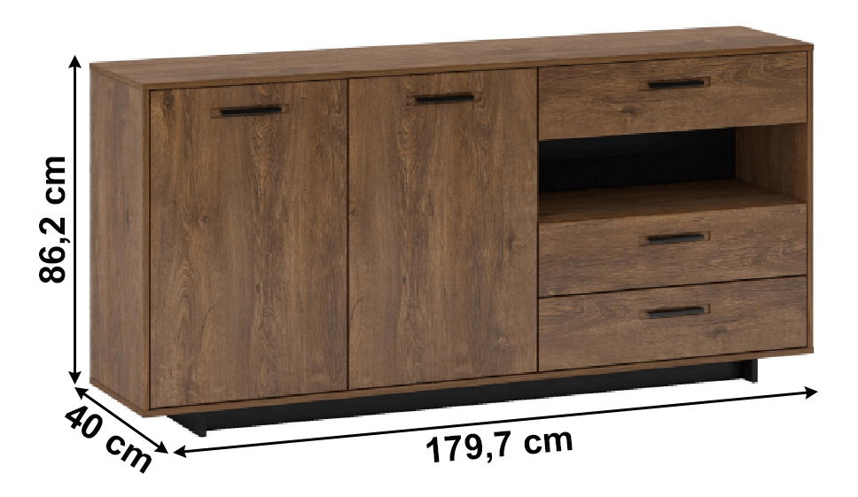 Komoda Diram G je funkční kus nábytku pro každou moderní domácnost. S výškou 86,2 cm a hloubkou 40 cm nabízí dostatek úložného prostoru pro vaše věci. Je vyroben z kvalitního dřeva dub bolzano a černá barva dodává tomuto kusu nábytku elegantní vzhled. Komoda má celkem 6 zásuvek, takže můžete snadno organizovat a ukládat vaše oblečení, knihy nebo jiné věci. Je to rozhodně investice, která vám poskytne dlouholeté pohodlí a útulnost vaší domácnosti. S touto komodou získá váš domov nejen praktičnost, ale také stylový vzhled.